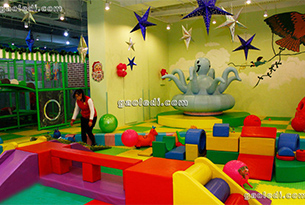 好奇益智兒童樂園位于順義區(qū)李橋鎮(zhèn)沿河村,是以海洋為主題的兒童樂園。兒童樂園的地墊、頂部以及游樂設(shè)備大都以大海的藍(lán)色為主色調(diào),這里有可愛的海豚,炫酷的潛水艇,美麗的人魚,還有路飛和他的海盜團(tuán)們,整個兒童樂園看上去就像一處神秘的海底世界。