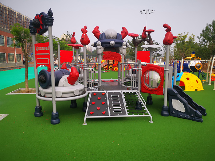 海盜船造型的兒童滑梯,滿足男孩子冒險的想法,登上海盜船,我就是強者。