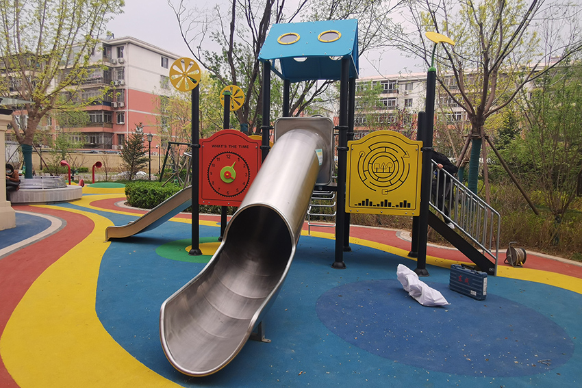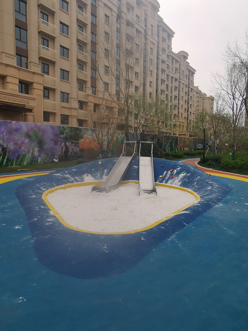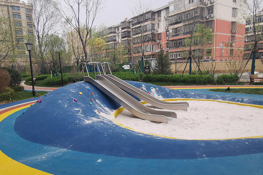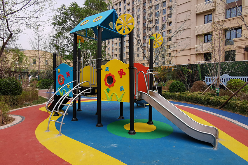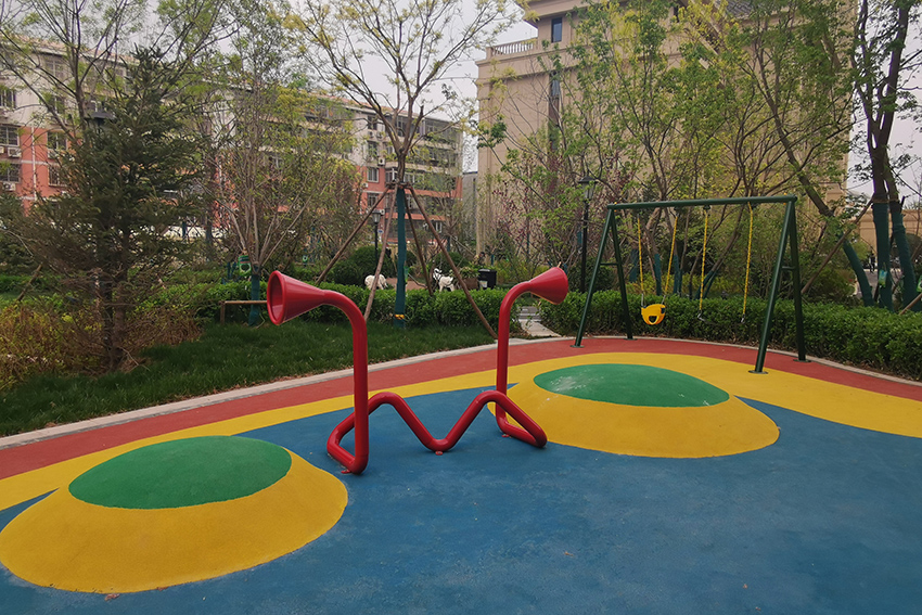 禧悅府位于北京市密云區(qū),總占地面積是56254 m2,擁有住戶732 戶,屬于比較好的居住社區(qū)。為了豐富社區(qū)兒童的娛樂生活,該住宅區(qū)與高樂迪合作,搭建微地形無動力兒童樂園。主要設施有:不銹鋼滑梯、微地形樂園、傳音筒、秋千、搖搖椅等。
