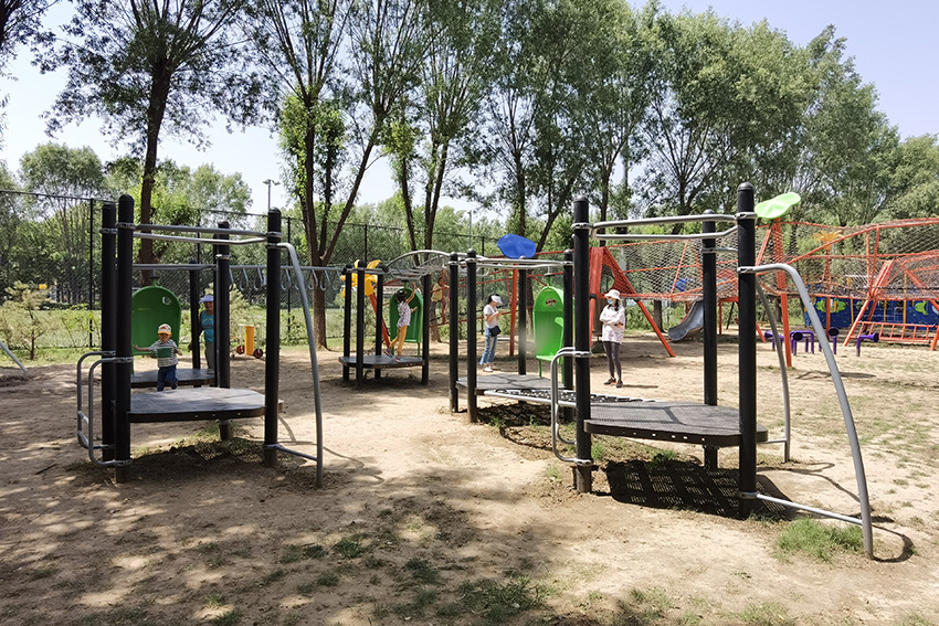 高樂迪所設(shè)計和建設(shè)的無動力游樂設(shè)施就在南宮體育公園戶外運(yùn)動場地周邊。兒童樂園擁有各種各樣的無動力游樂設(shè)施,滿足不同年齡段孩子們的需求,孩子們在這里可以得到很好的身體鍛煉,每天都不愿意回家呢!