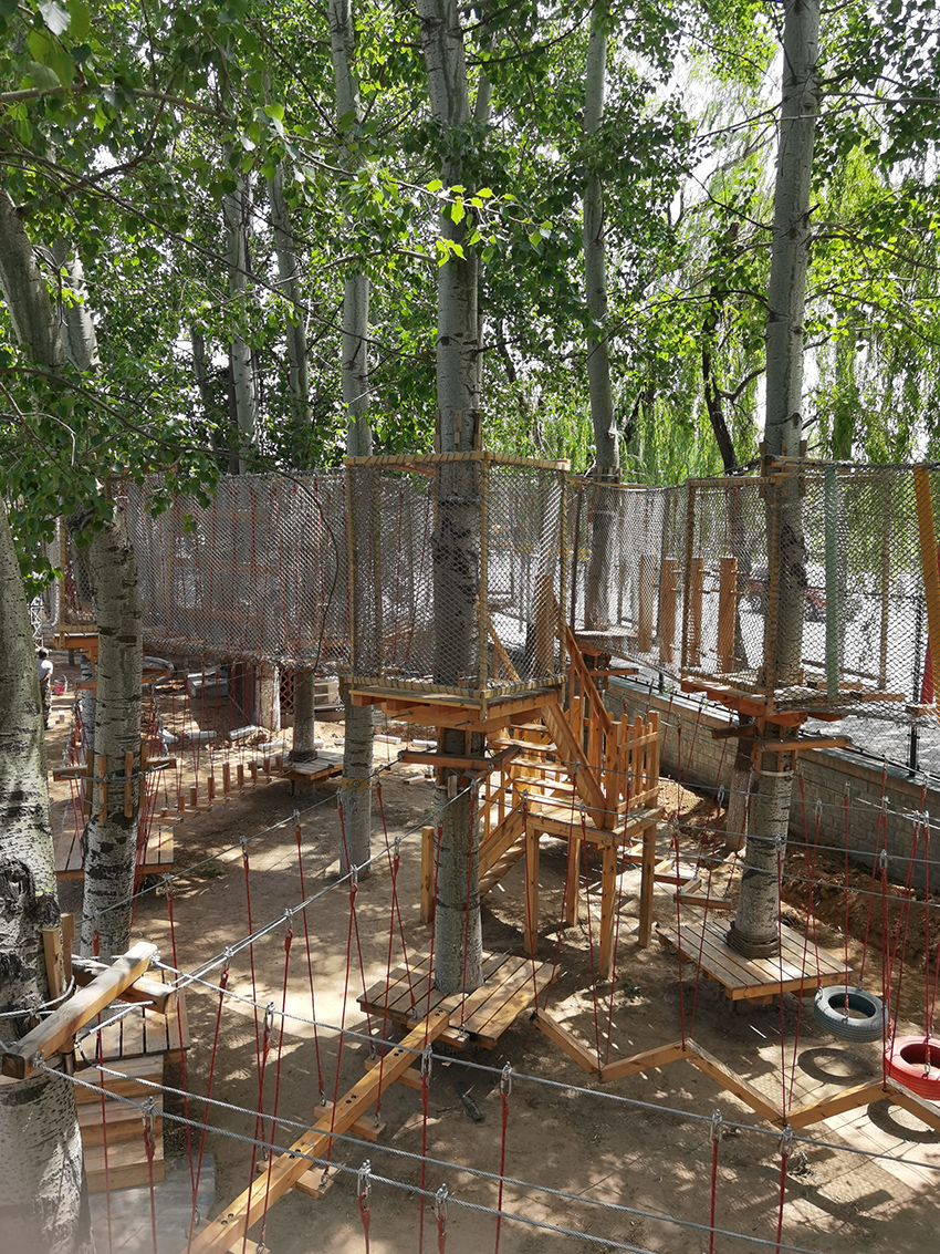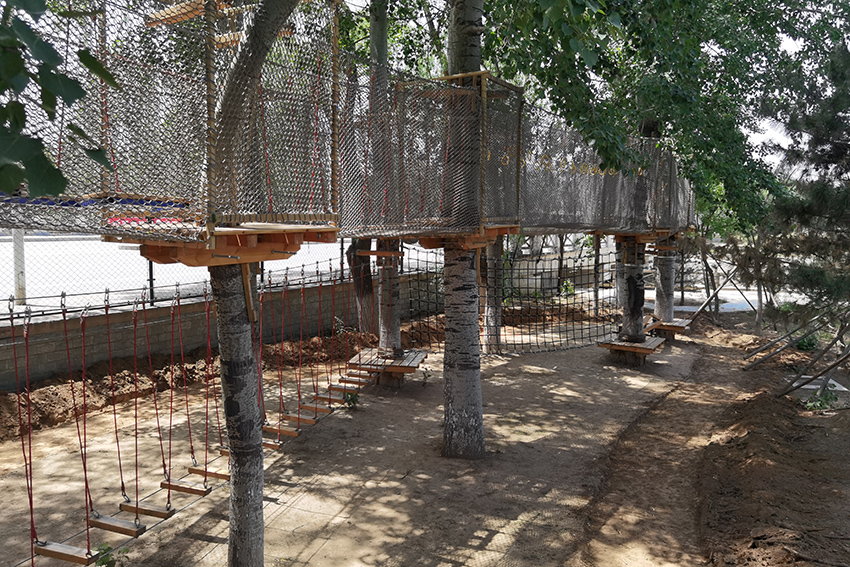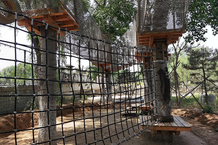 下面是拓展區(qū),適合孩子體能訓(xùn)練,有繩網(wǎng)的保護(hù),高空行走也很安全。