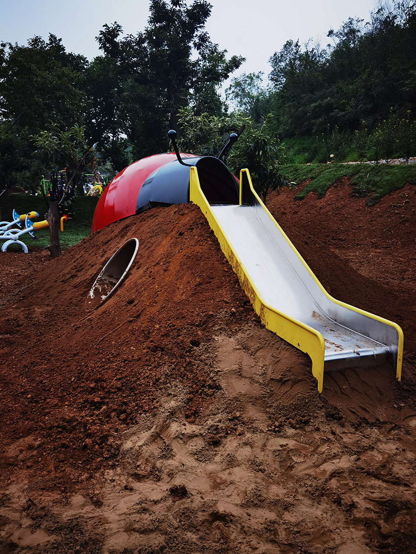 破土而出的七星瓢蟲,采用動(dòng)物與滑梯的結(jié)合,充滿童趣,又具可玩性。