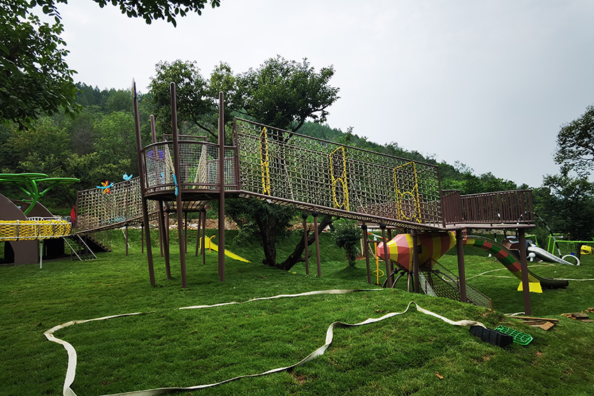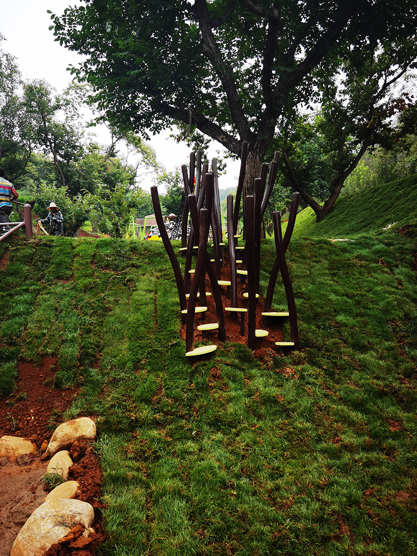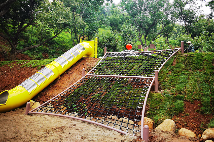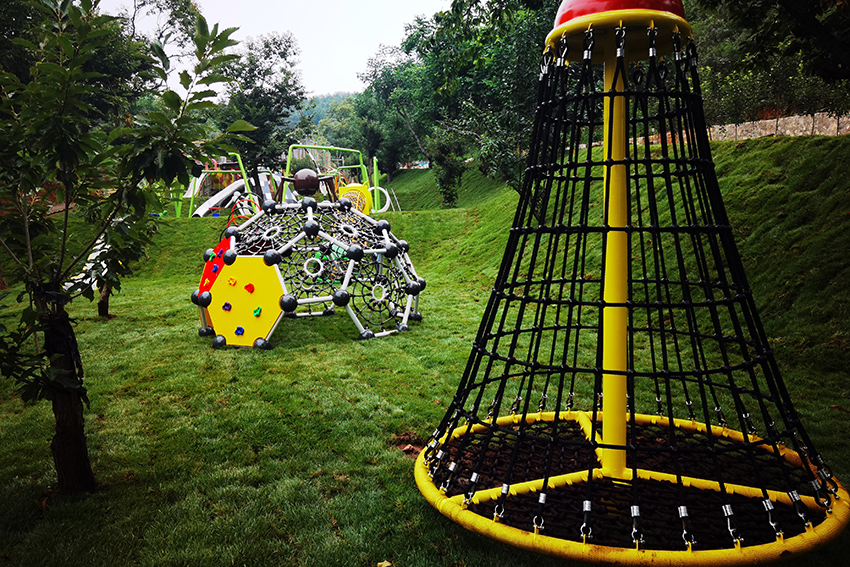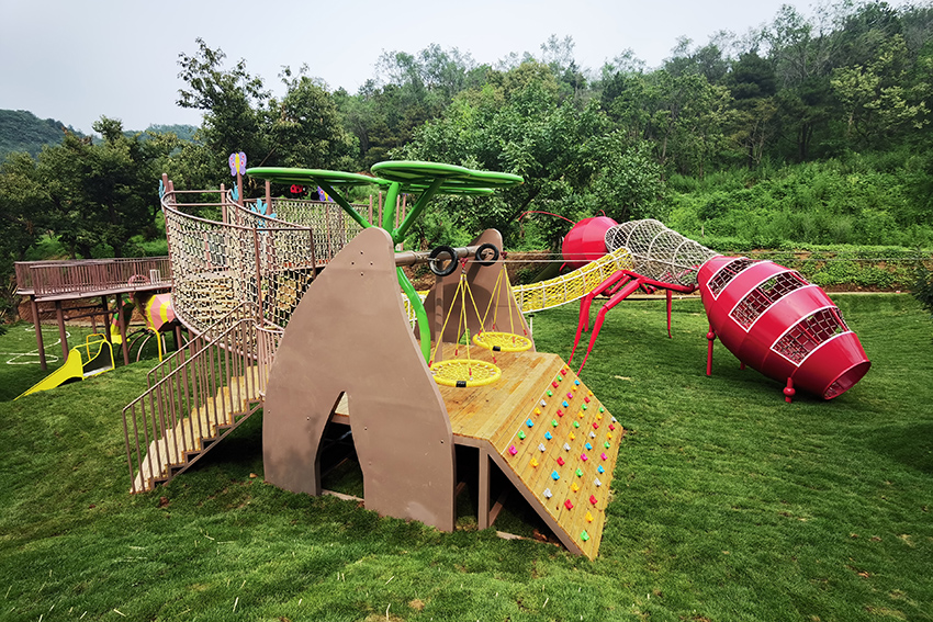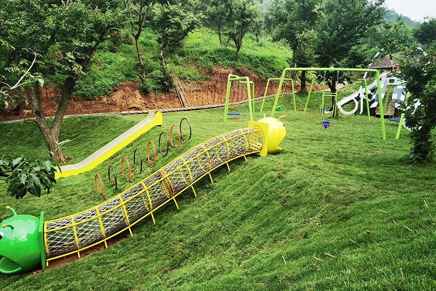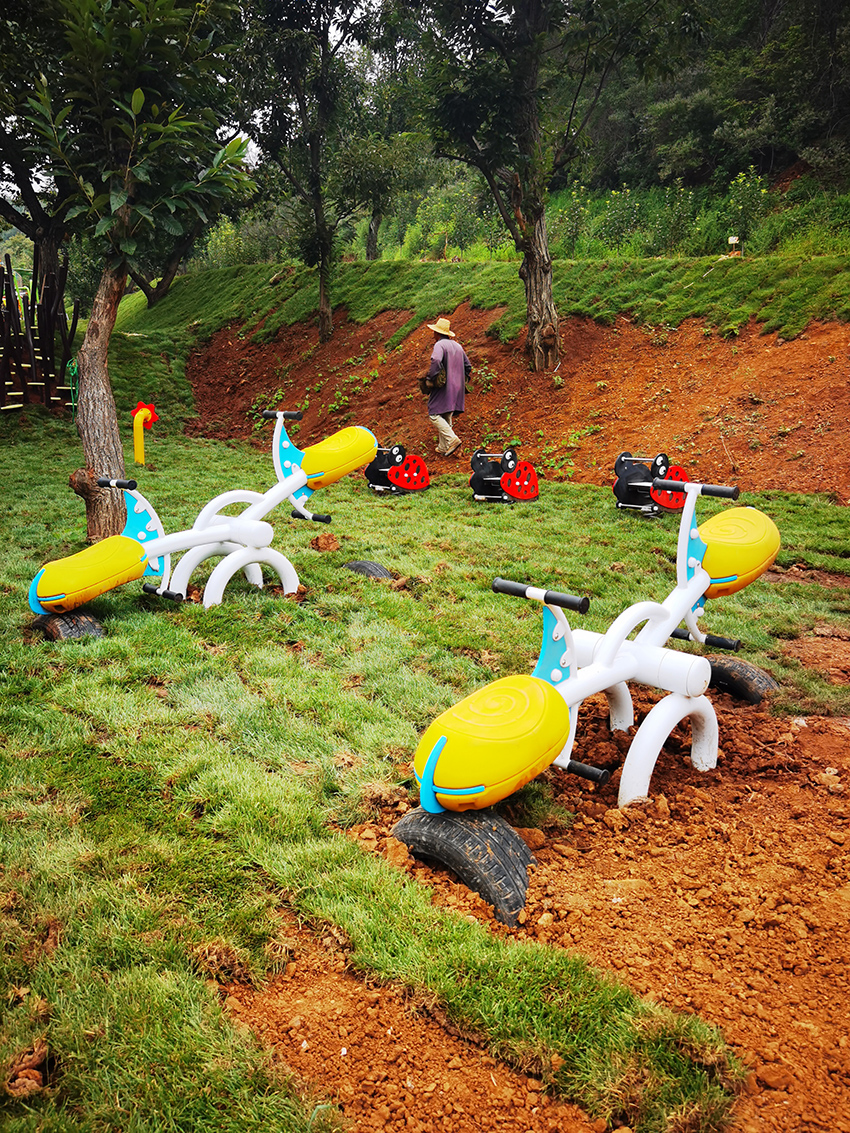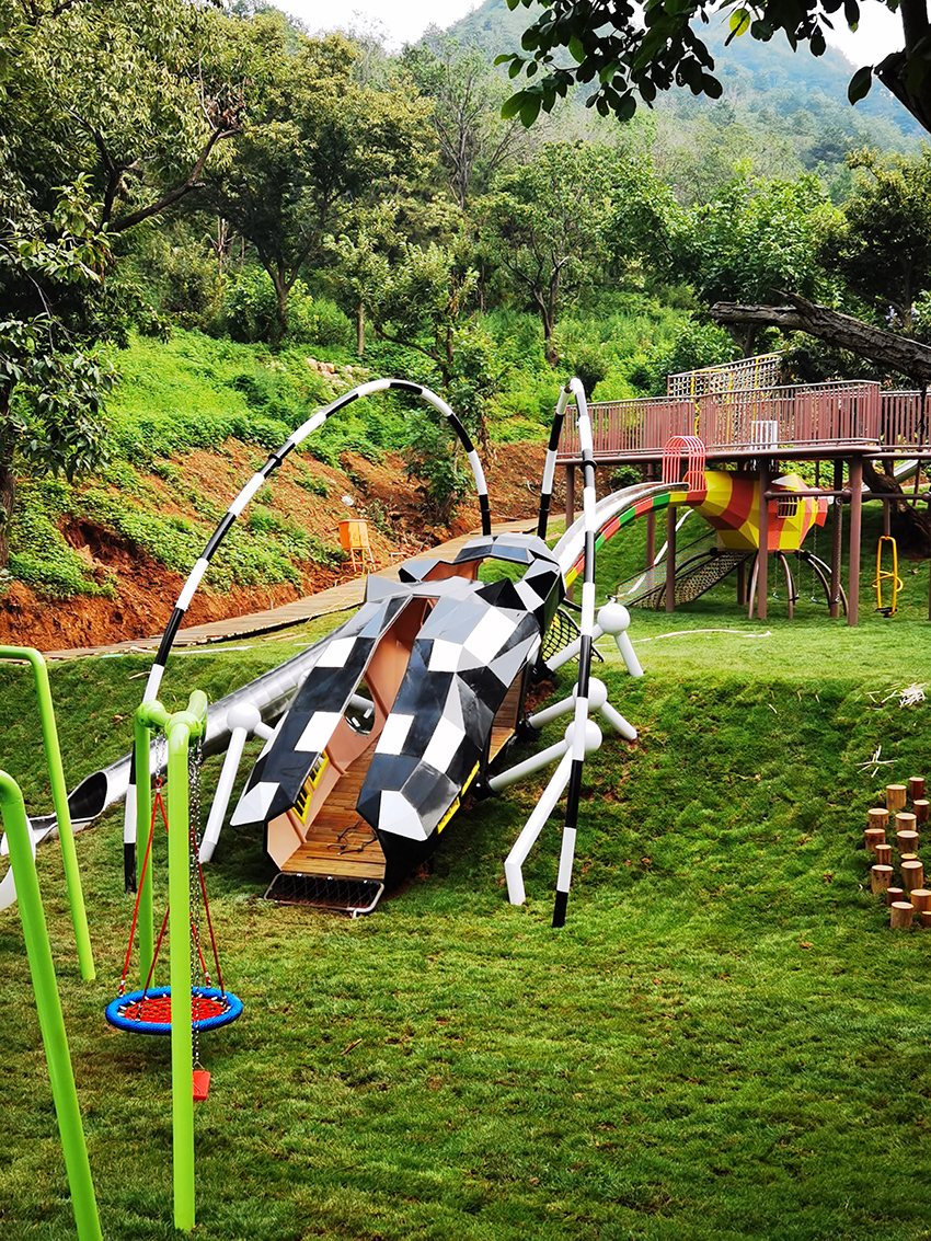 北京平谷嘻谷拾光無(wú)動(dòng)力兒童樂(lè)園坐落在平谷大華鎮(zhèn),整座兒童樂(lè)園以草坪為底色,結(jié)合各種動(dòng)物造型的無(wú)動(dòng)力游樂(lè)設(shè)施,就是一座天然的昆蟲世界。螞蟻、瓢蟲、天牛、蜻蜓…可愛呆萌極了。高樂(lè)迪將將科學(xué)和 游樂(lè)有機(jī)融入到自然之中,再結(jié)合階梯式地形建有秋千、滑梯、爬網(wǎng)、滑索、蕩橋、蹦床等等讓孩子體驗(yàn)到鉆、攀、爬、跑、跳、滑等不同的樂(lè)趣。