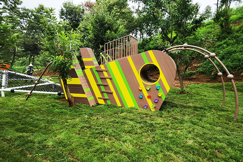 蚱蜢造型的游樂(lè)設(shè)施,可以攀爬、鉆圈,淘氣的寶寶肯定很喜歡。