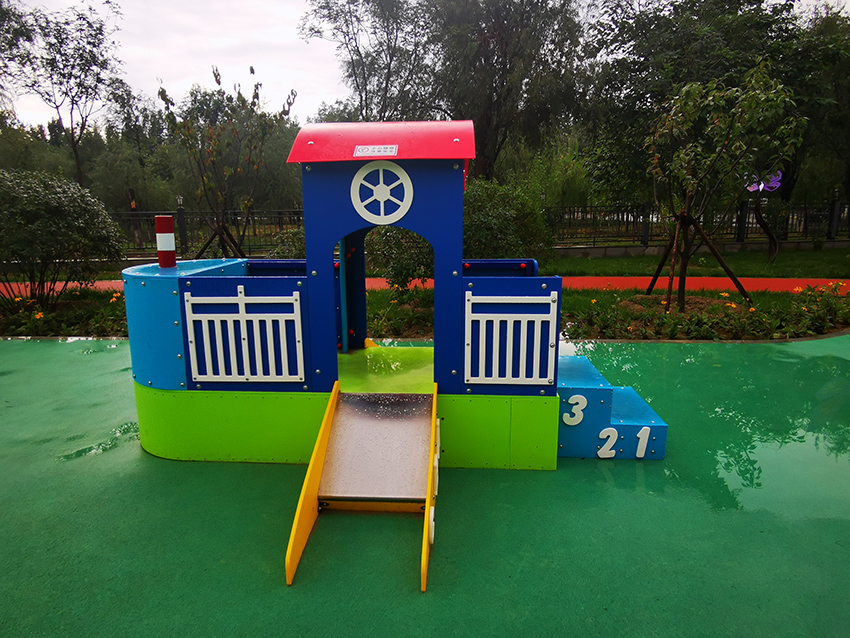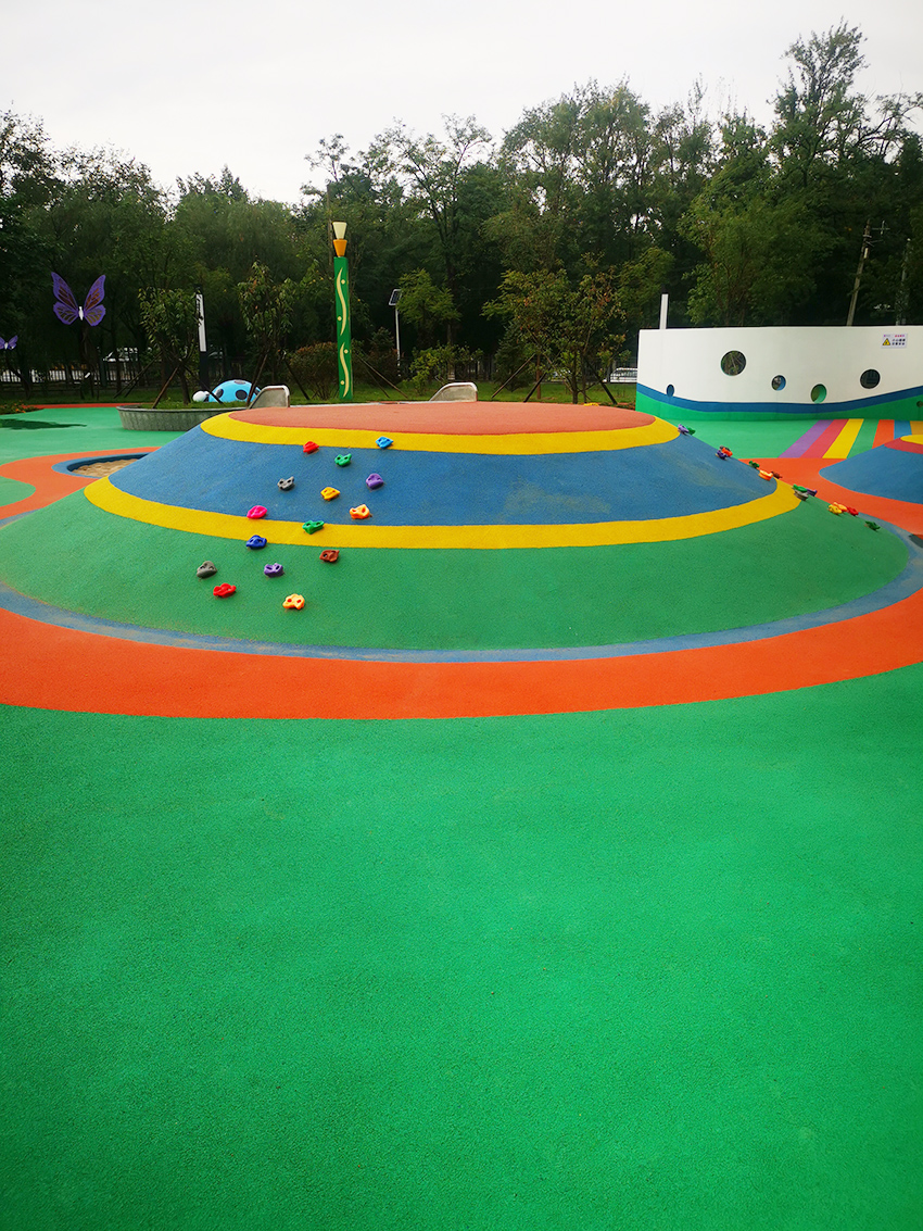 七彩橡膠廣場與景觀墻組合在一起,是孩子們玩耍的地方。