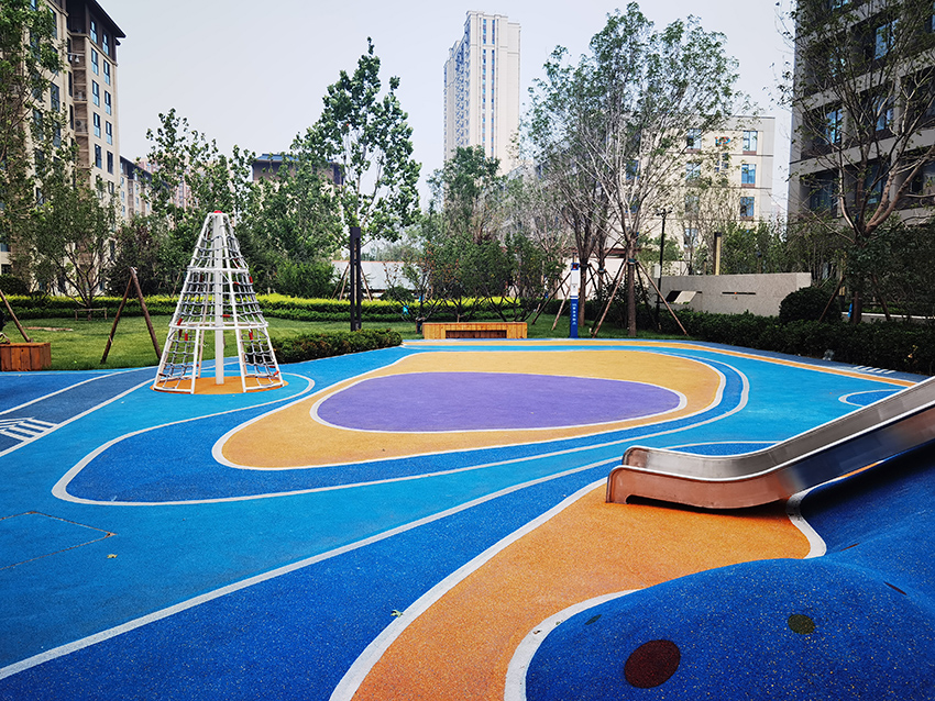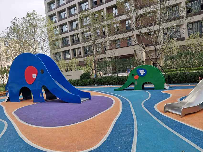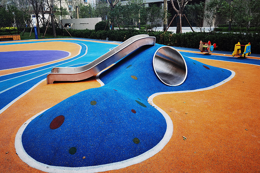 北京亦莊首創(chuàng)遠(yuǎn)洋禧瑞天著社區(qū)的主題樂園位于社區(qū)內(nèi)的中心廣場,廣場采用橡膠地面,擁有微地形樂園,可以讓孩子鉆爬,也有滑滑梯,還有動(dòng)物造型的小滑梯,秋千架,攀爬架等,可以讓孩子們自有玩耍。